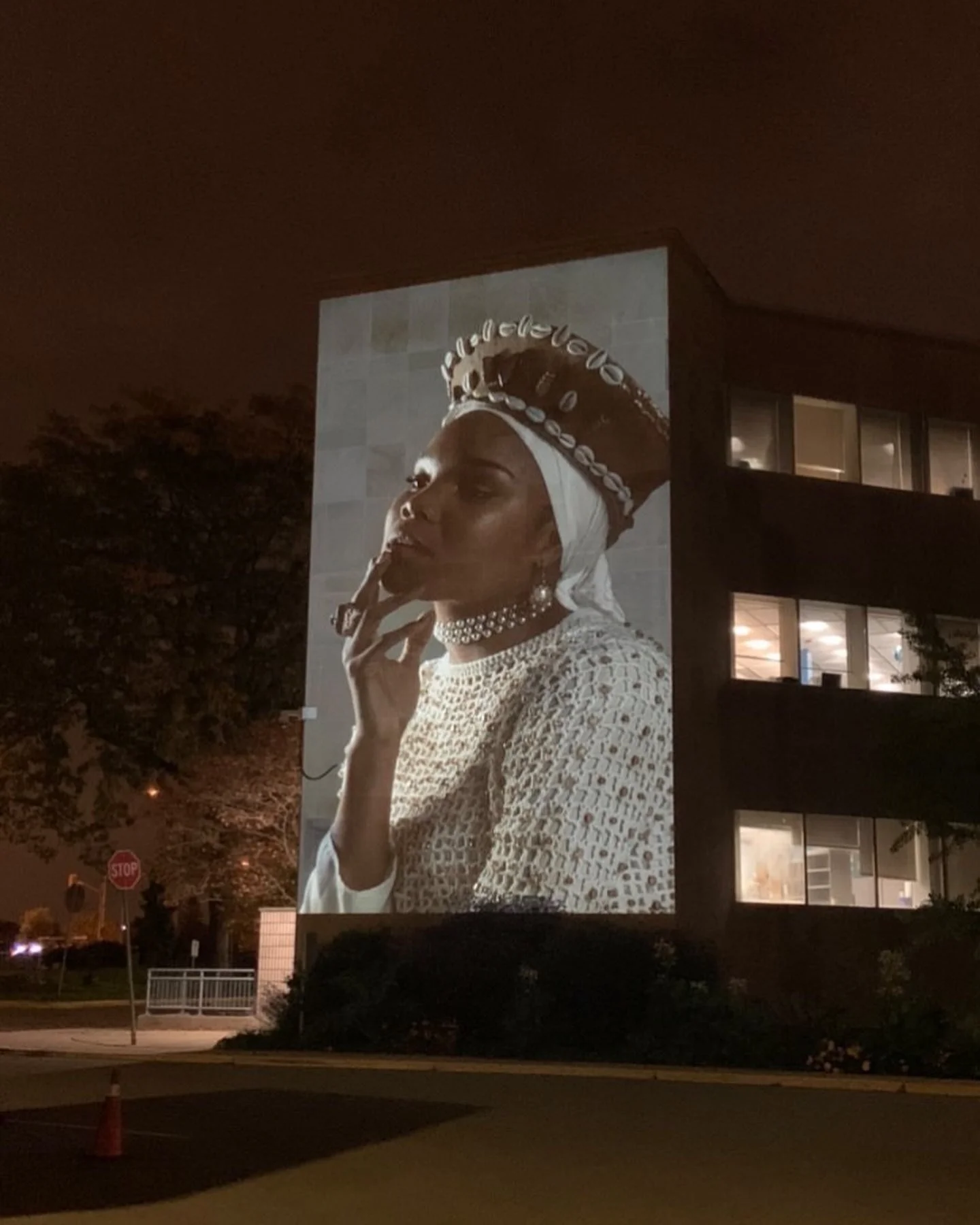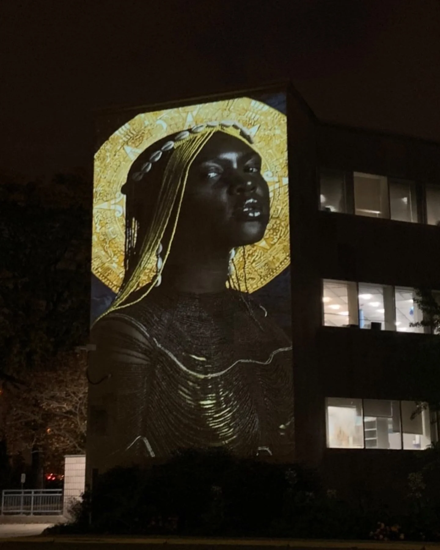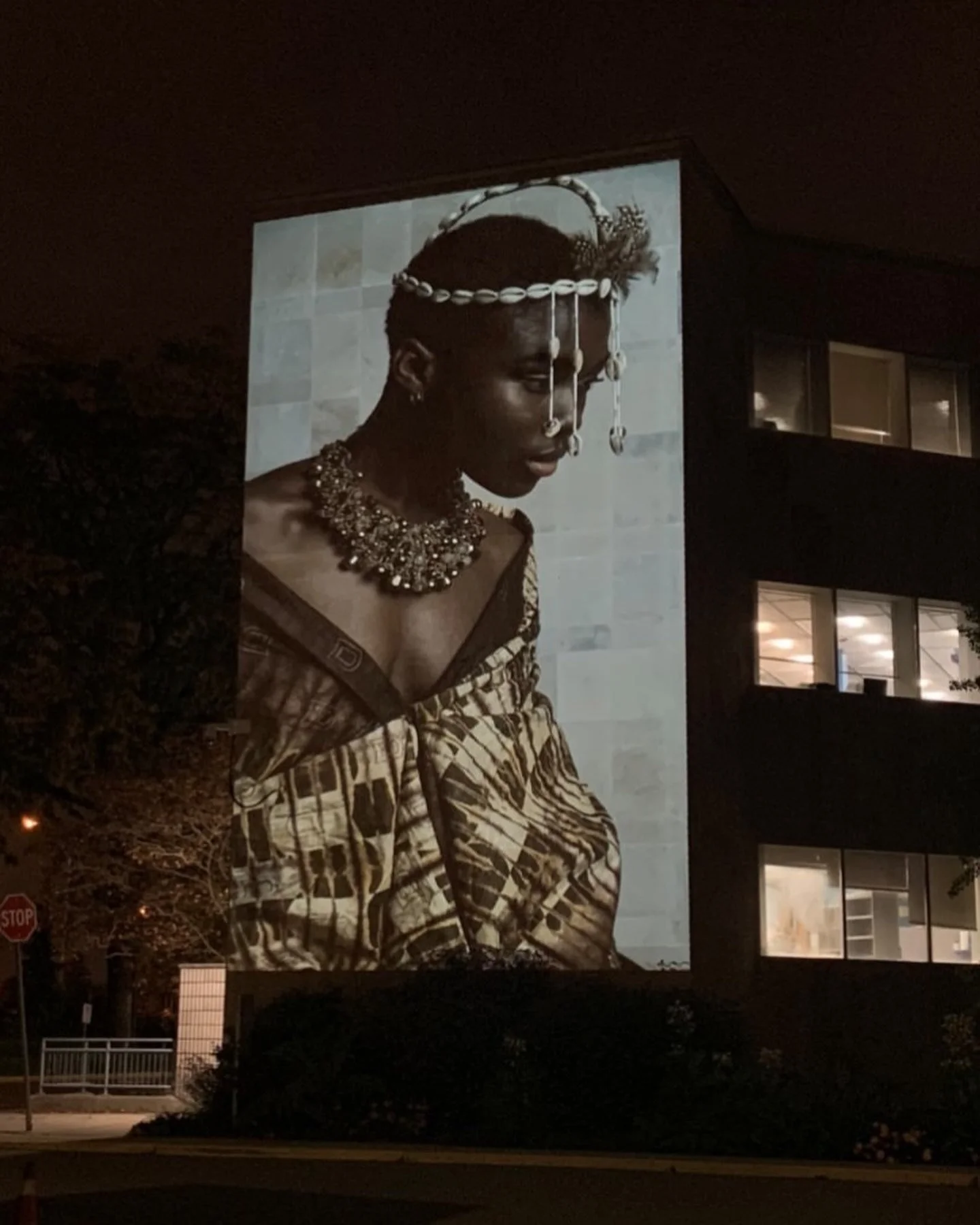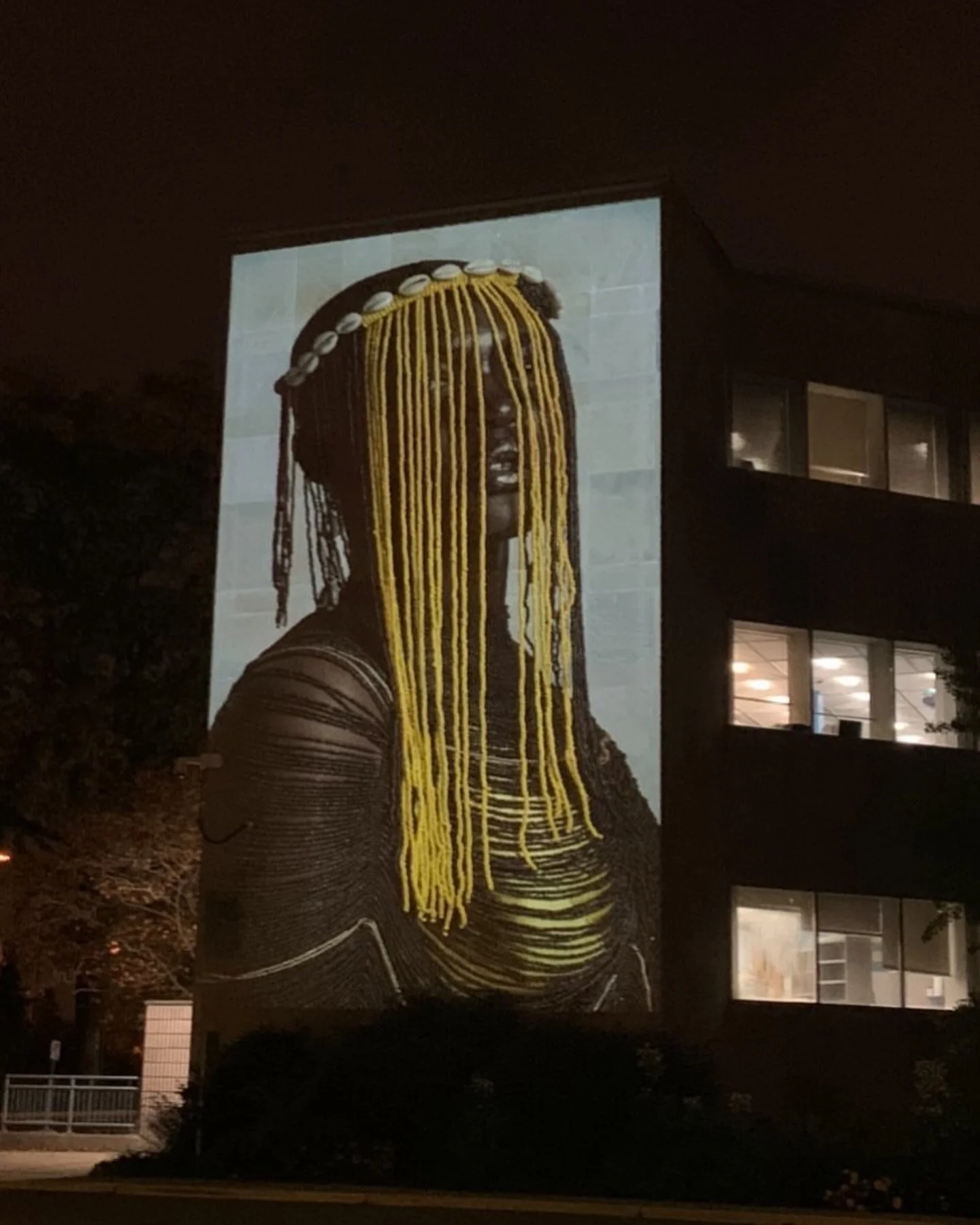 Responding to the curatorial theme of “The Echoes of Community”. These projections around the city address our questions about notions of community: How do collective and community-rooted experiences radically reimagine art practices? How do ancestral knowledge of the past and the future inspire our making? What is revolutionary about community ties and how do we utilize those connections to upend oppressive systems?